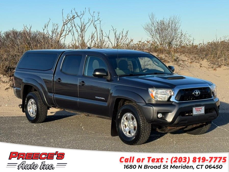 Serving the Meriden Community "SINCE 1940 Trust Experience - Trust Preece's" We are a Highly Reputable CT Licensed Used Car Dealer Owned by the Preece Family For All Your Automotive Needs! *** LONG BED w/LEER CAP & LOADED!!! Certified "CARFAX", Local Toyota Dealer Trade-In. Finished in Magnetic Gray Metallic w/Graphite Full Cloth Interior. Loaded Including; 4.0L V6, Automatic, Rear Wheel Drive w/4x4, SR5 Trim Package, Entune Audio, Bluetooth, USB/AUX Input, Back-Up Camera, Power Rear Sliding Window, Cruise Control, Keyless Entry, 16-inch Alloy Wheels, Tow Package, Factory Bed Extender, Color-Matched Leer Cap, Running Boards, & So, So & Much more. 137k Original Highway Miles. Fully Serviced w/20 Documented Records Including; xxxxxxxxxxxxxxxxxxxx, Fully Safety Checked, Valid CT Emissions/Inspection Report for 2 Years, Fresh Oil Service & more. This 2014 Toyota Tacoma V6 SR5 4x4 Crew Long Bed Pickup w/Leer Cap Looks & Runs in Absolutely "PRISTINE" Condition in Every Way !!!