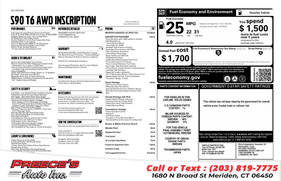 2017 Volvo S90 T6 AWD Inscription, available for sale in Meriden, Connecticut | Preeces Auto Inc. Meriden, Connecticut